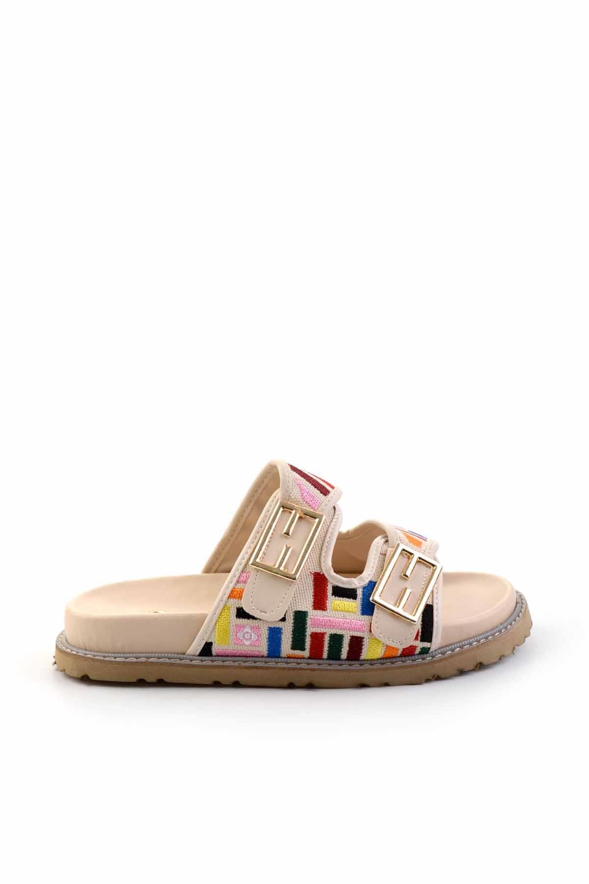 Bej Çok Renkli Kadın Terlik K04638042509 (K04638042509-Bej Çok Renkli)