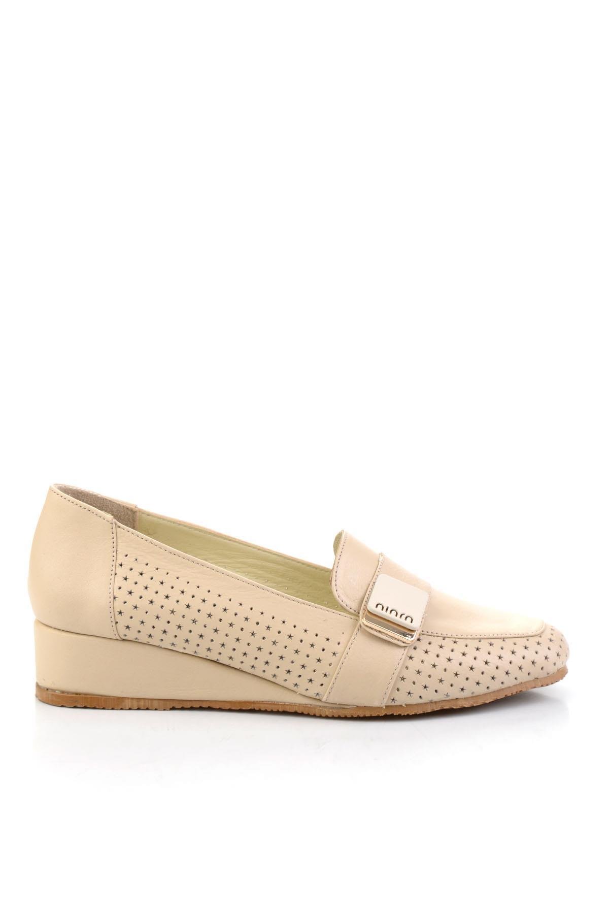 Bej Hakiki Deri Kadın Dolgu Topuklu Ayakkabı K01531250003 (K01531250003-Bej)