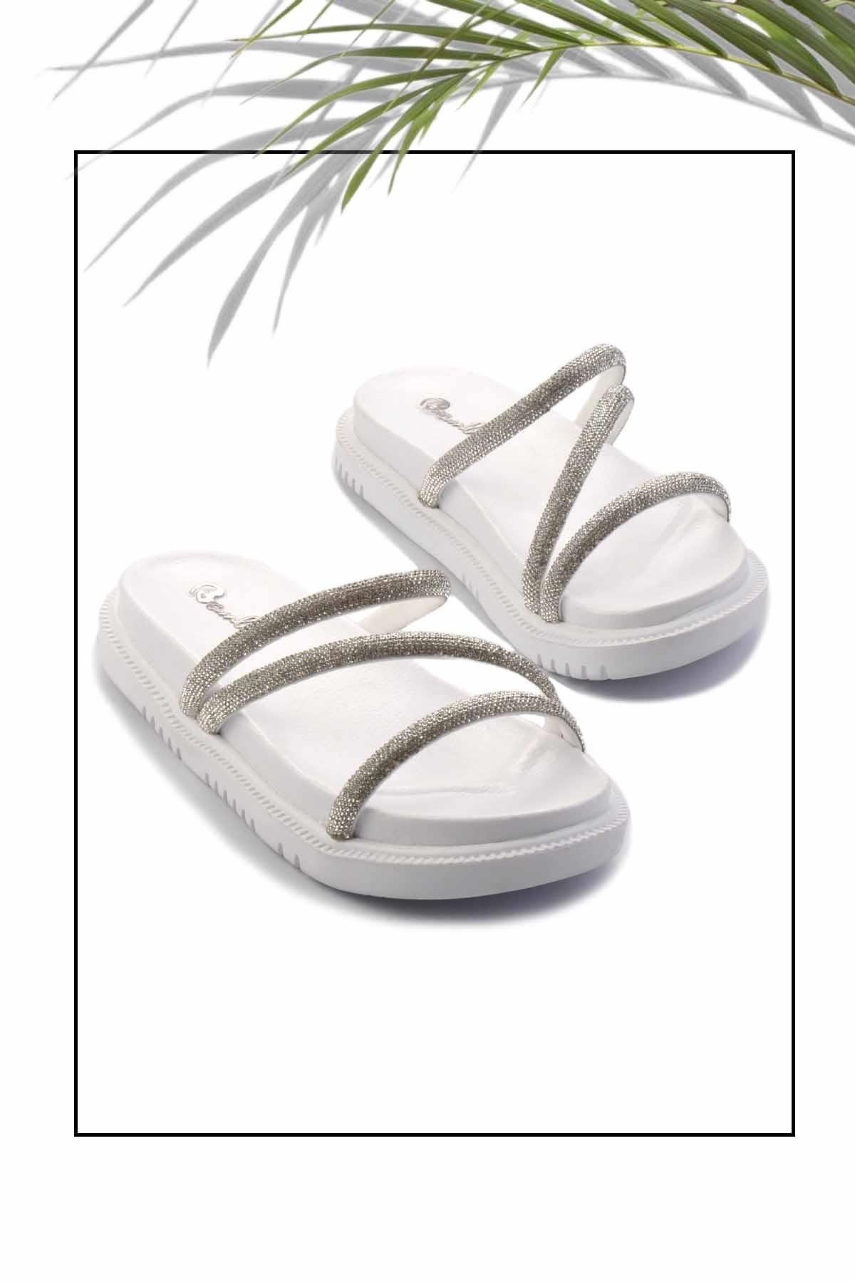 Beyaz Lame Kadın Terlik K04666013387 (K04666013387-Beyaz Lame)