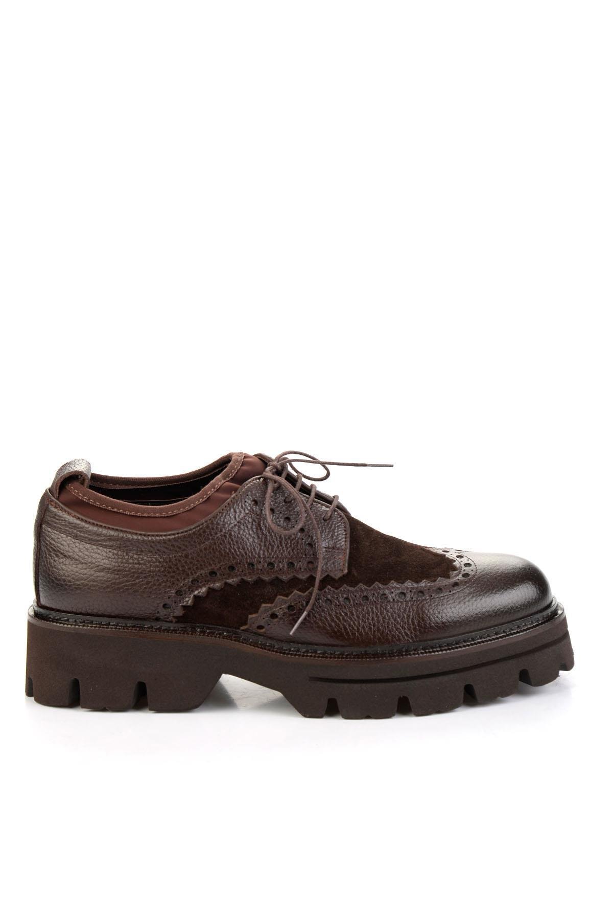 Kahve Kahve Hakiki Deri Erkek Oxford Ayakkabı E01580400740 (E01580400740-Kahve Kahve)