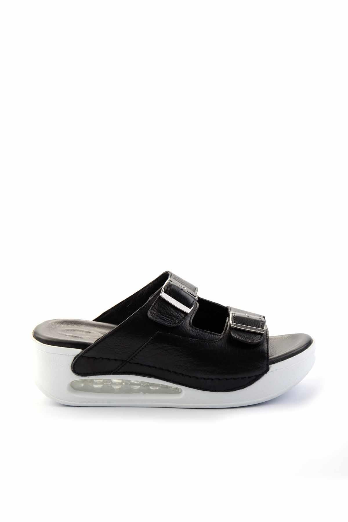Siyah Beyaz Hakiki Deri Kadın Terlik K04498700203