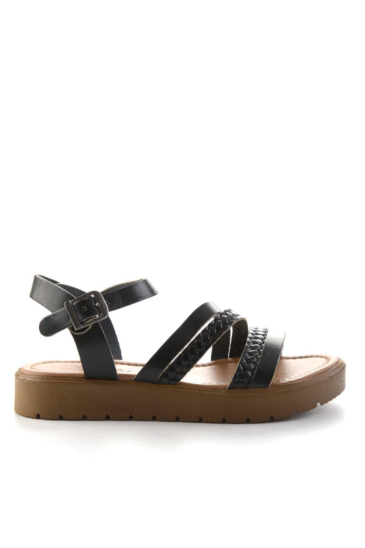 Siyah Hakiki Deri Kadın Sandalet K05826001003