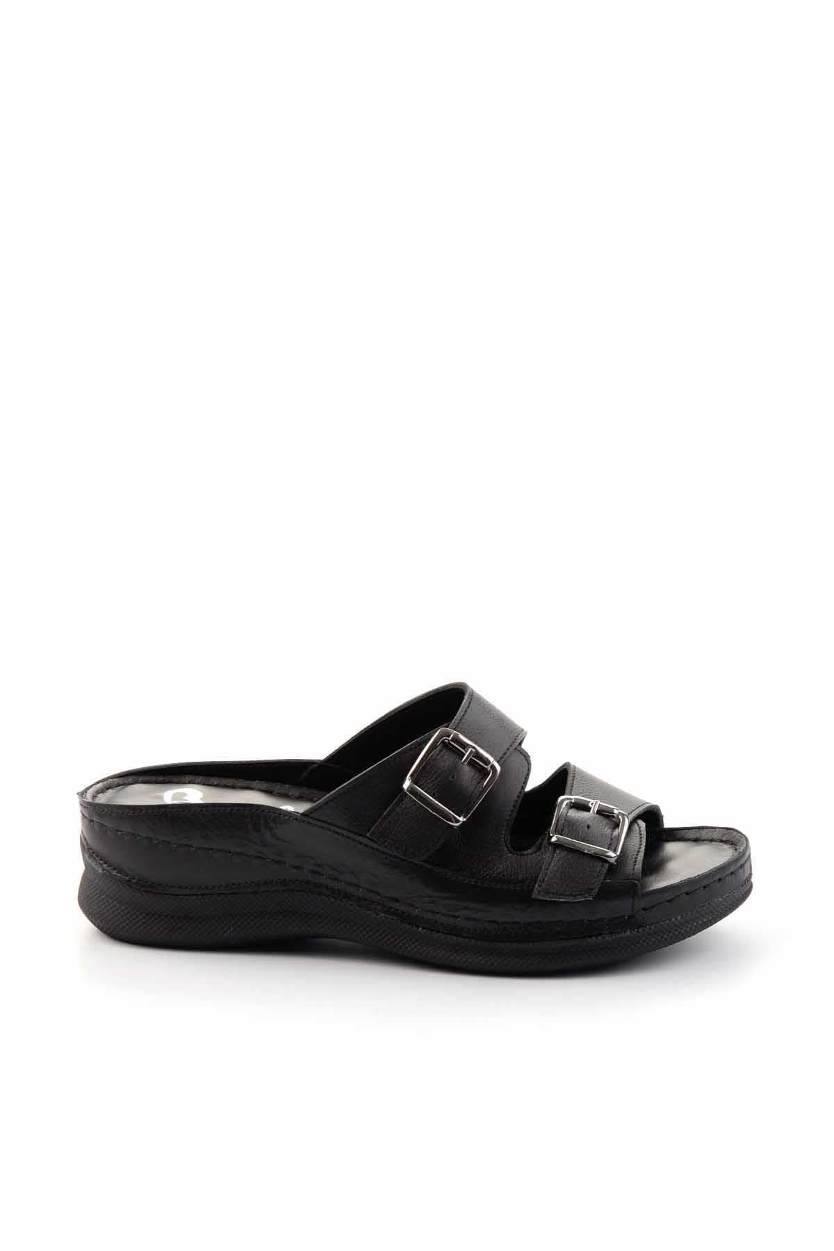 Siyah Hakiki Deri Kadın Terlik K04272005003 (K04272005003-Siyah)