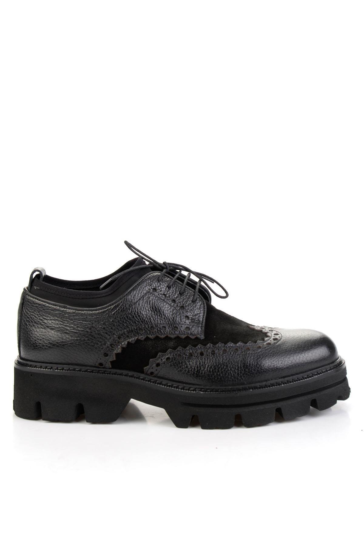 Siyah Siyah Hakiki Deri Erkek Oxford Ayakkabı E01580400740 (E01580400740-Siyah Siyah)